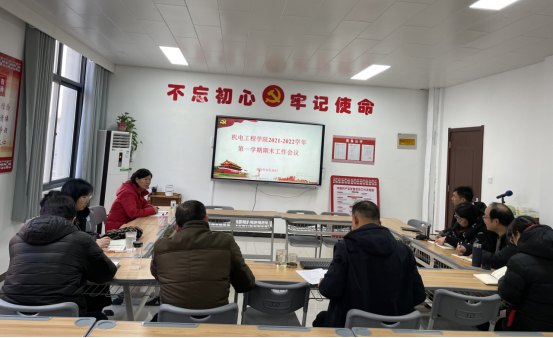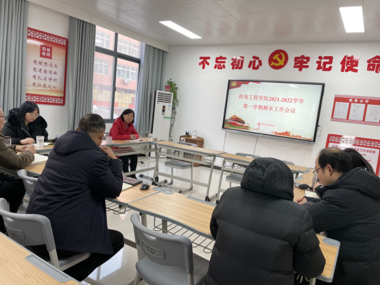 为贯彻落实学校期末寒假工作会议精神,统筹安排好学院期末和假期相关工作,机电工程学院于2021年12月26日上午,在行政楼A212会议室召开学院期末工作会议暨教学工作研讨会,学院书记、副院长、教研室主任及专业负责人、院办主任、教学办人员、学工办主任、团委书记参加了此次会议,会议由学院院长黄双成院长主持。