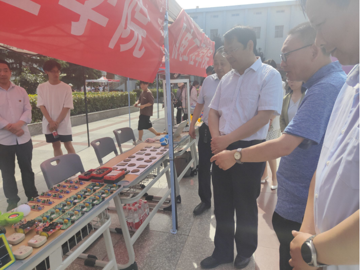 为深入贯彻落实党的二十大精神,推动现代职业教育体系建设改革,弘扬劳动光荣、技能宝贵、创造伟大的时代风尚,2023年5月15日下午,学校在郑州校区北广场组织了以“技能,让生活更美好”为主题的职业教育成果展。在学校2023年职业教育活动周启动仪式结束后,学校领导和教师代表纷纷走到郑州校区北广场,参观了学校职业教育成果展区。