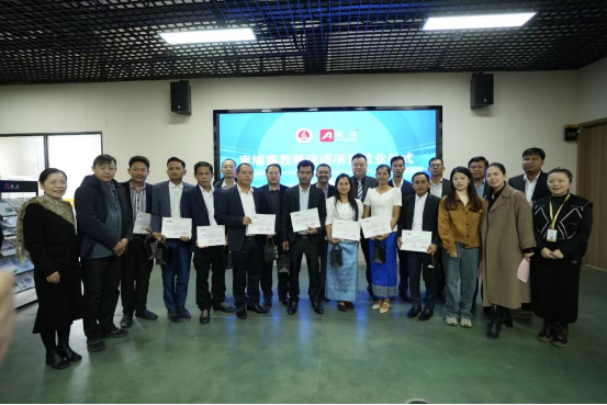 12月16日上午,柬埔寨人民共和国教师团来华“中文+职业技能”结班仪式在亚龙智能装备集团股份有限公司行政楼四楼会议室举行。来自柬埔寨12名学员,学院副校长常新中、亚龙智能装备集团股份有限公司总经理陈传周,机电工程学院院长黄双成等相关人员参加结班仪式。会议由亚龙智能装备集团股份有限公司市场部经理章剑云主持。