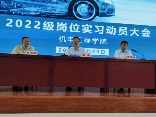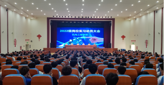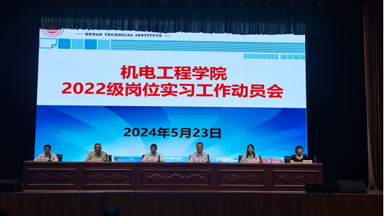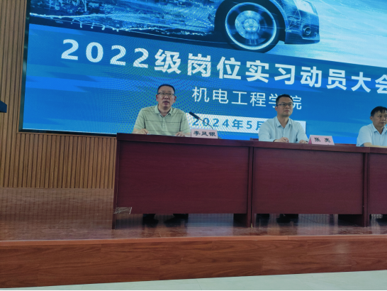 为加强2025级毕业生对岗位实习课程的认识,引导学生树立正确的实习观,2024年5月22日-23日,机电工程学院在分别在东西校区召开岗位实习动员大会,机电工程学院党总支书记张亮、院长黄双成、副书记耿丽敏、副院长李凤银、22级辅导员、顶岗实习教师以及全体2022级学生参加大会,会议由办公室主任张光锋主持。