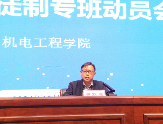 为进一步深化校企合作,提高人才培养质量,2024年10月10日,机电工程学院在学生活动中心召开了现代学徒制专班动员会,机电工程学院学院院长黄双成党总支书记贾建树、22级现代学徒制专班的优秀学生代表李景瑞同学以及全体23级学生参加了会议,会议由副书记耿丽敏主持。