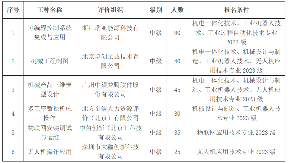 为着力推动岗课赛证融通,不断提升学生就业竞争力,现面向机电工程学院学生开展2024年度下半年“1+X”证书报考工作,具体报名通知如下。