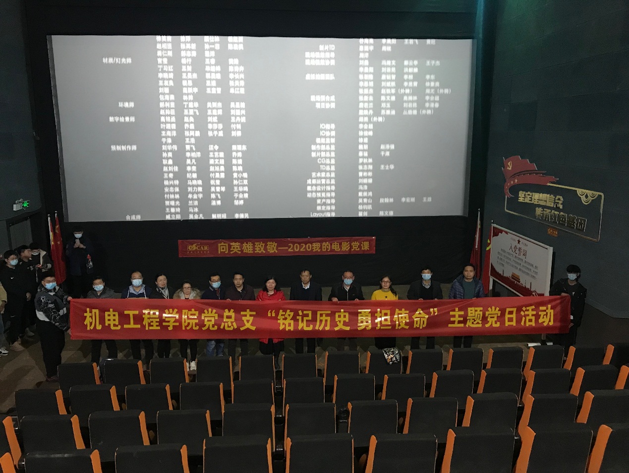 为了激励学院师生学习“四史”的激情,加强党员师生爱国主义热情,传承和弘扬伟大的抗美援朝精神,追忆那场震惊世界、意义非凡的伟大战争,激励学院师生为实现中华民族伟大复兴的中国梦而努力奋斗,2020年11月24日,机电工程学院党总支开展了“铭记历史 勇担使命”主题党日活动,在郑州西苑广场电影院共同观看了电影《金刚川》。