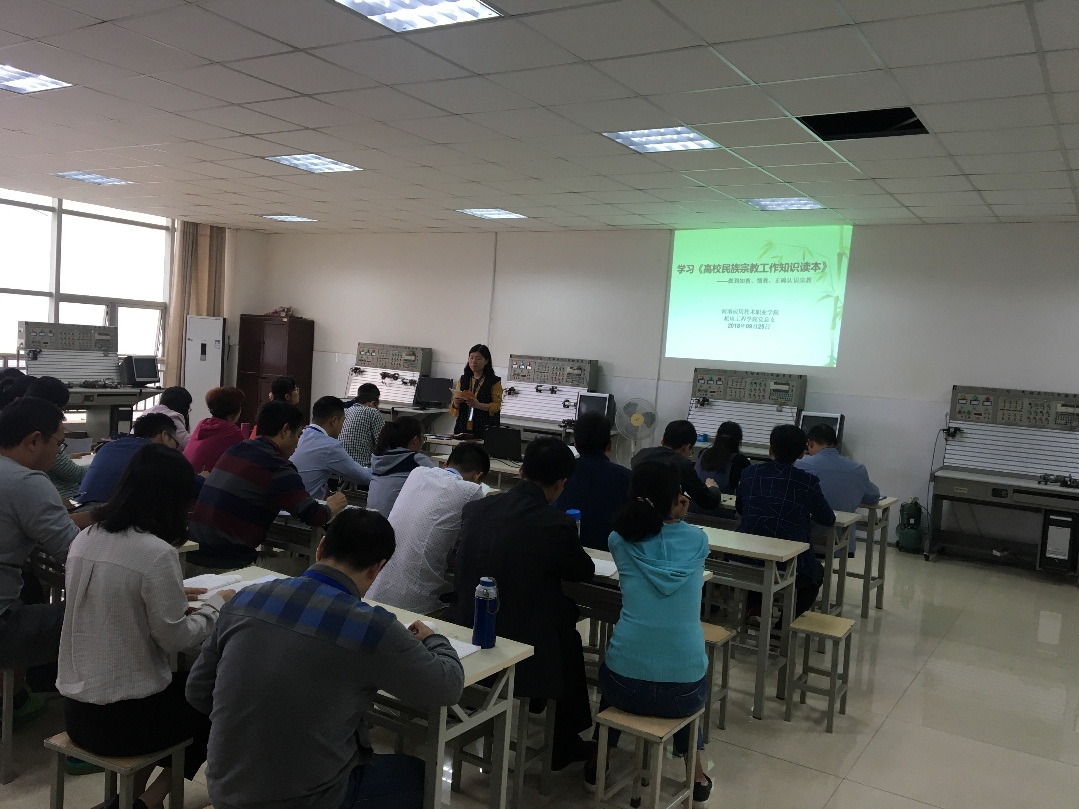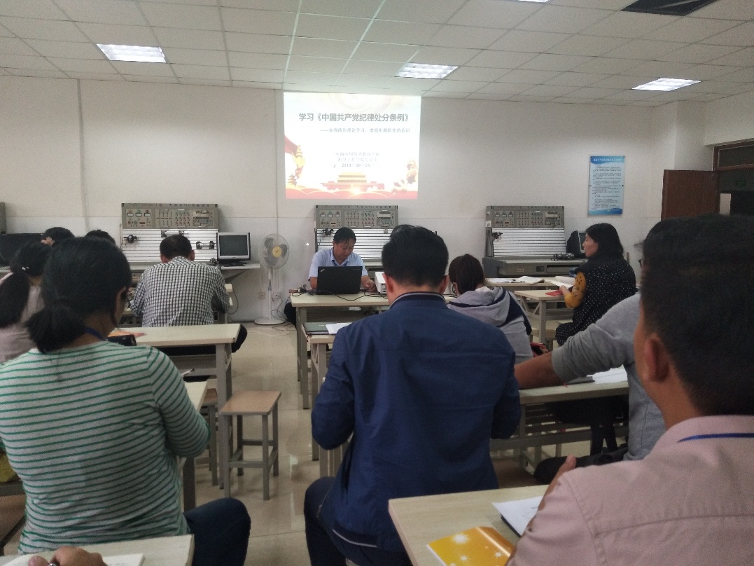 根据学校党委工作安排,2018年9月25日下午,机电工程学院党总支组织全体教职工认真学习了《高校民族宗教工作知识读本》,组织全体党员原原本本学习了《中国共产党纪律处分条例》全文。学习共分两个阶段进行。