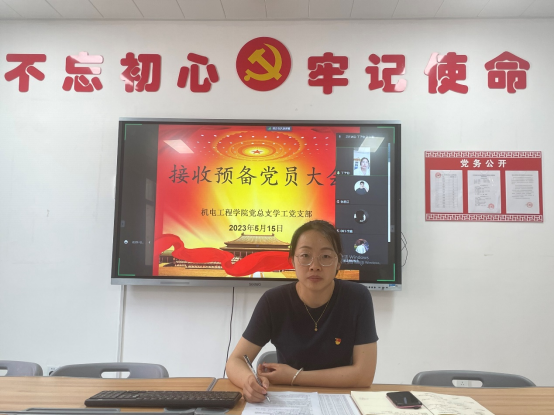 按照学校党委学生党员发展工作安排,2023年5月15日,机电工程学院党总支学工党支部于A212召开2023年预备党员发展大会,本次会议由机电工程学院党总学工党支部书记耿丽敏主持,学工党支部全体党员及发展对象参加了此次会议。大会主要议题是讨论计川雷等23名同志接收为预备党员问题,会议严格按照组织接收预备党员的程序进行。