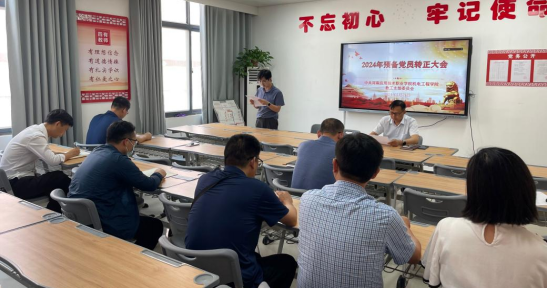 为进一步加强党的队伍建设,增强党员队伍的生机和活力,落实机电工程学院教工党支部党员发展工作计划,2024年5月21日,机电工程学院教工党支部召开预备党员大会,讨论关于预备党员范景峰和康恒源同志的转正事宜,大会由教工党支部组织委员李凤银主持,全体党员参加会议。