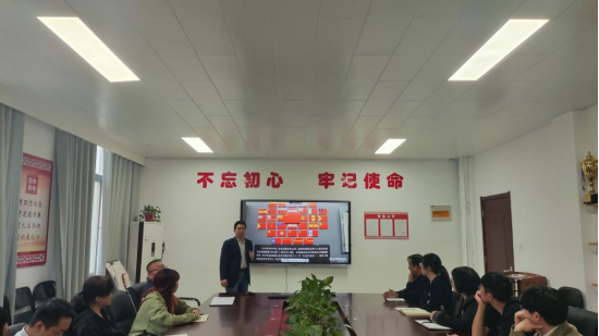 随后,贾建树为大家详细介绍了五星红旗脱颖而出的历史过程,并带领大家再次回顾了五星红旗所显示出的中国共产党的领导核心地位和党领导下的革命人民大团结的象征意义。他指出,国旗是国家的象征和标志,爱护国旗、维护国旗尊严是每一个公民的责任和义务。大家要在祖国的生日来临之际,将国旗的深刻内涵牢记心中,传播开来,过一个充满爱党爱国情怀的美好佳节。