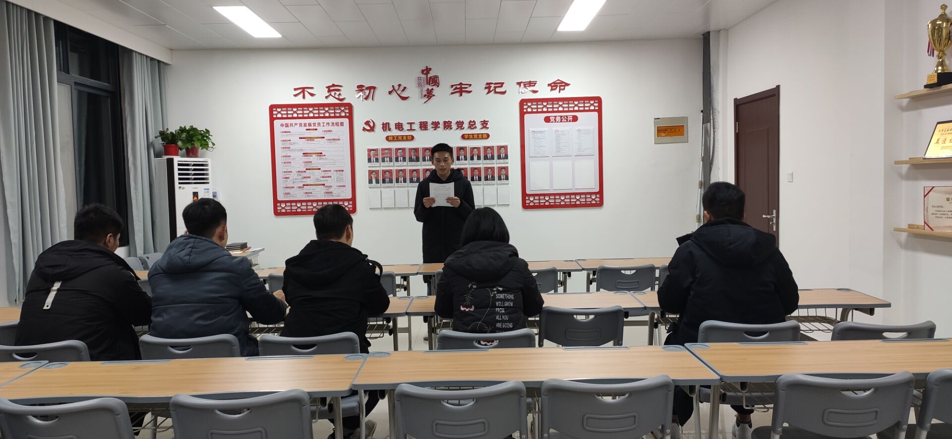 2019年12月20日晚上7点,在办公楼212房间,机电工程学院朗诵小组迎来了第一次朗诵比赛。此次比赛主题为“迎新年”,由邓艳丽书记、常惟诚老师,还有代表机电工程学院参加过校朗诵比赛的钮军霖同学、李洋学同学、刘海洋同学担任评委,何培豪同学担任主持人。比赛前,屈延龙同学和张华伟同学认真地布置了会场,准备好了比赛所需用品,为比赛的按时进行做好了充分的准备。