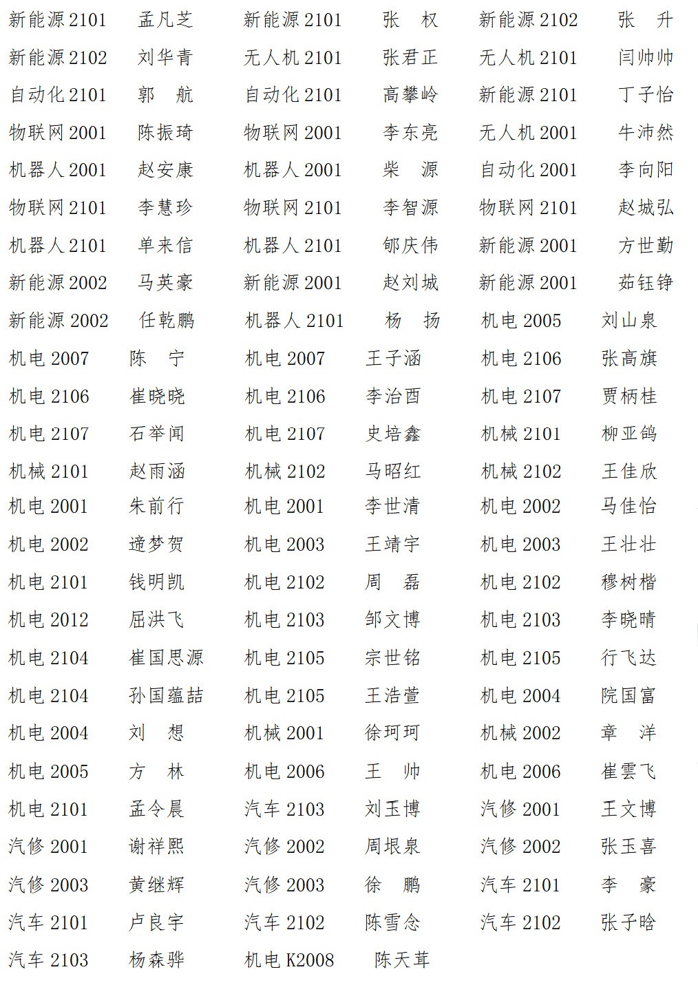 物联网2001 张天龙 无人机2001 时一鸣 机械2002 李好春