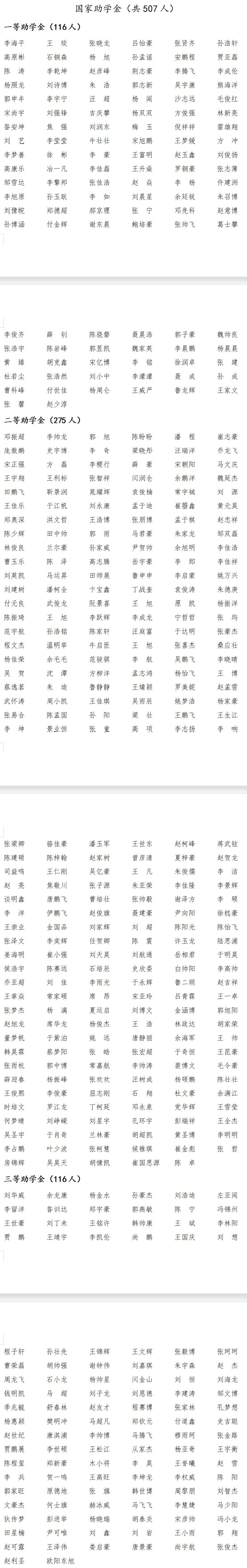 国家奖学金:(共3人)