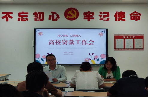 会上,机电工程学院资助专员江丽梅老师首先介绍了《河南省教育厅国家开发银行河南省分行关于切实做好2023年度助学贷款工作的通知》的基本政策,对贷款对象和申请条件、贷款额度和还款期限、办理时间和所需材料、首贷和续贷操作等作了详细的政策解读,并对当前助学贷款后期工作会遇到的问题进行了深入交流。随后,张亮书记强调了学生生源地助学贷款回执代码录入工作的重要性,并叮嘱大家一定要及时录入回执,做到“早录入,早排查”,严谨细致地做好2023年国家助学贷款工作。