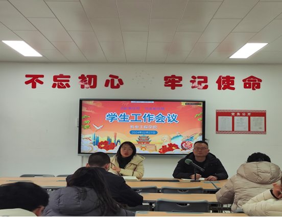 首先,副书记耿丽敏传达了学校2024年工作部署会上关于学生管理工作的会议精神,重点围绕消防安全、学风建设、思政教育、日常管理、宿舍安全、心理健康教育、资助育人、就业创业等方面工作进行了全面梳理和重点安排。其次,各年级辅导员老师就学生本学期的重点工作进行了充分的研讨。最后,机电工程学院党总支书记张亮立足学院工作实际,分析了新学期学生管理工作面临的机遇和挑战,要求辅导员牢记使命与担当,切实负起责任,及时提供帮助,重视方式方法,跟学生建立良好的师生沟通关系,成为学生健康成长路上的知心朋友和引路人。新学期,全体辅导员老师厘清学生工作的思路和方向,安全底线不动摇,常规工作要规范,特色工作要凝练,不断提高业务水平和能力。