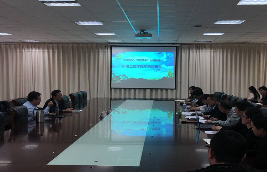2019年10月8日,校党委副书记、校长范晓伟到机电工程学院开展“不忘初心、牢记使命”主题教育调研,副校长赵玉奇陪同,机电工程学院党政班子和全体教师参加了此次调研会。