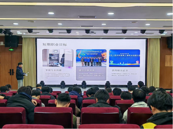 活动最后,贾建树作总结讲话,提出三点要求:一是锚定育人核心,强化体系支撑。学院将持续完善生涯指导服务体系,搭建更多交流展示、实践探索平台,为学生发展提供坚实保障。二是明晰成长路径,锤炼核心能力。勉励全体学生志存高远、脚踏实地,主动把握行业趋势,精准定位自身优势,科学制定发展目标,在持续学习与实践中提升专业素养与综合能力。三是融入时代大局,勇担青春使命。呼吁学生将个人理想融入建设制造强国的伟大征程,以扎实本领和担当精神,在国家产业升级与高质量发展中贡献青春力量。