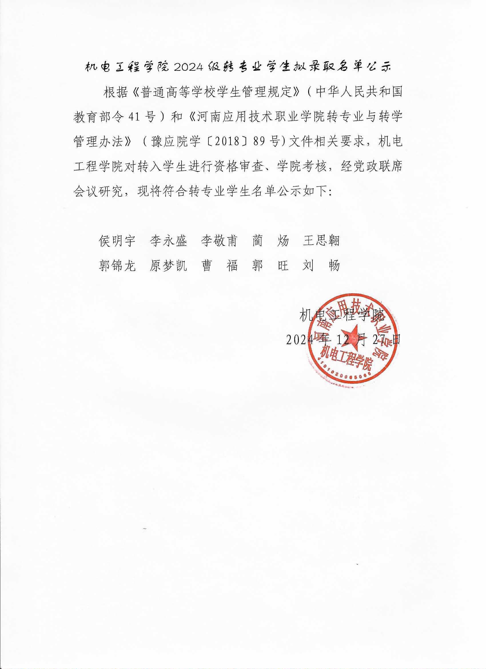 下一条:机电工程学院关于做好2024级学生转专业的实施方案